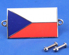 Patriotic national flag badge of Czech Republic, hard jewellers enamel badges, multi coloured, chrome backing approx 56mm x 35mm, supplied with two mounting bolts for mounting on to bonnet or...