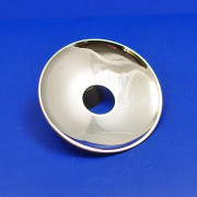 Plated dish reflector to assist with light reflection in rubber divers lamp, overall diameter 55mm with 14mm hole in the centre.