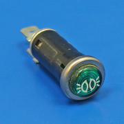Chrome rimmed panel warning light, green dipped lights. Rim diameter 16mm approx, Hole required 12.5mm approx. Fitted with BA7S bulb holder and 12V 2W bulb as standard. 6.3mm push on spade/Lucar...