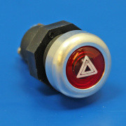 Chrome rimmed panel warning light, red hazard lights. Rim diameter 16mm approx, hole required 12.5mm approx. Fitted with BA7S bulb holder and 12V 2W bulb as standard. 6.3mm push on spade/Lucar...