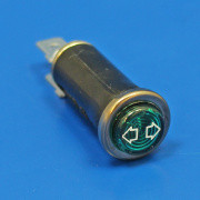 GREEN Dash or panel warning lamp with metal bezel (diameter 22mm) - PRINTED with single ARROW symbol. Rear body black plastic, fits through 17.5mm panel hole (maximum 12mm thickness), secured with...