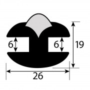 Black rubber extrusion as per illustration. Approximate overall dimensions 10.5mm x 19mm, please see the drawing for more detailed dimensions