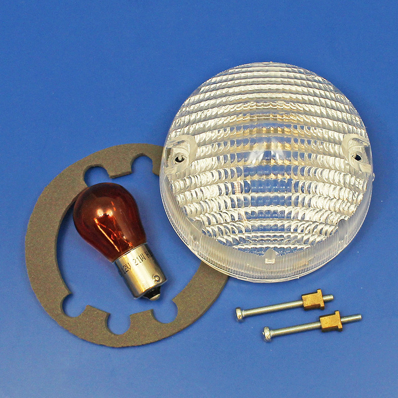 Clear lens indicator conversion kit for Lucas type L794 lamps. Includes new clear lens, amber bulb and new bolts. Update the look of your Morgan with these high quality lenses. Supplied with a 12V SCC BA15S amber bulb - please see our part number B343B for spares.