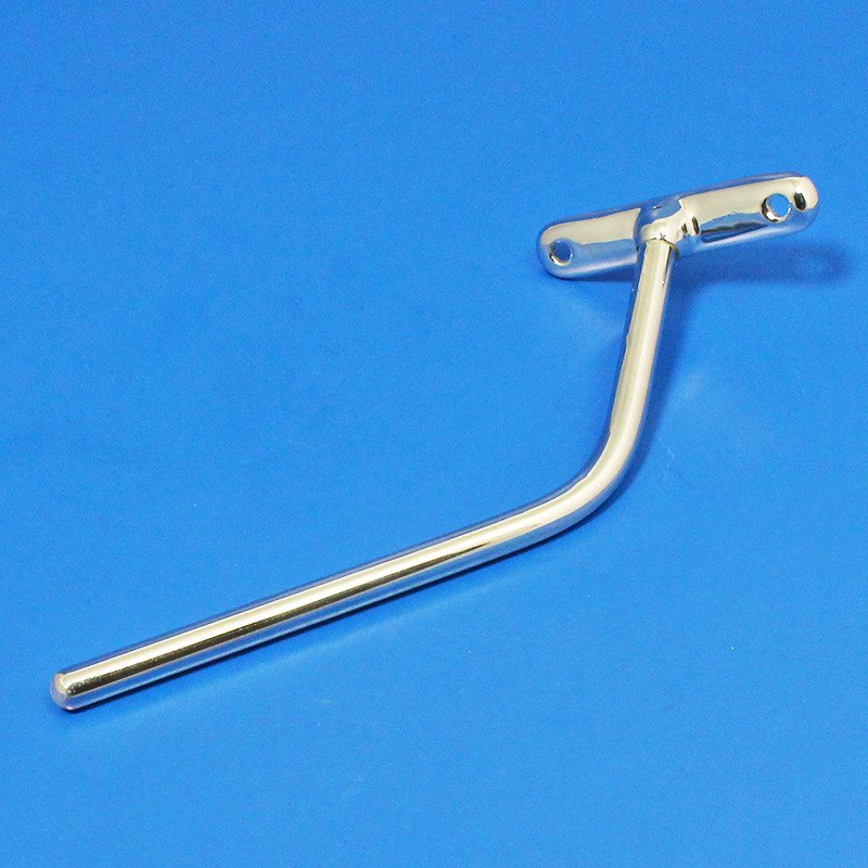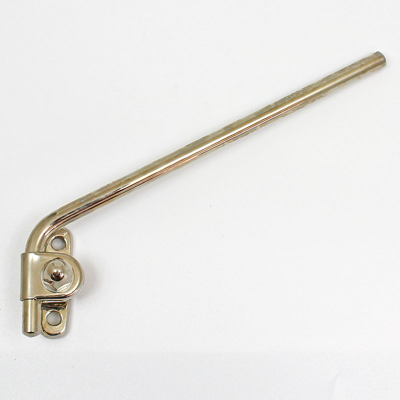 Non-adjustable cranked rod mirror arm, available in chrome or nickel plated finish - please make your selection from the option box. Arm base dimensions 96mm x 21mm with two approx. 6mm diameter mounting holes with 75mm between centres. 7/16" (11mm) diameter rod approx. 150mm long. Offered for LEFT or RIGHT side fitting. Please note that style may vary from illustration. Lost wax cast bronze base with solid brass rod.