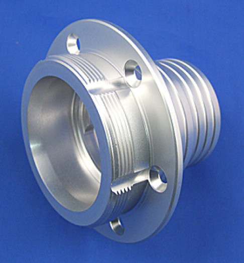 Flanged aluminium neck with internal spigot for 2" (51mm) or 2 1/4" (57mm) pipe. Thread 2 3/4" x 16TPI, overall diameter 94mm. 6 holes at 3" PCD. This flange will accept the LIK1 locking filler cap