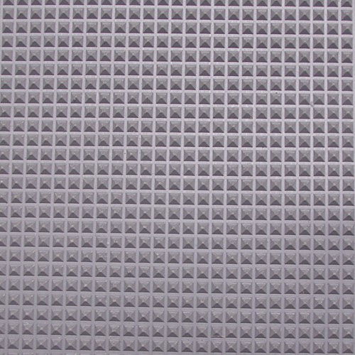 Pyramid pattern matting, approx. 4 squares per 25mm, 4mm thick. Please order the lengths of the pieces required individually - we will cut in length units of 0.10 metre. Overseas customers please note that the weight of this mat is approx 4.4kg per square metre, so heavy for carriage. This item offered in Black and Grey colour PLEASE NOTE: we offer this material in the cut widths of 30cm, 50cm, 65cm or 100cm. A full roll sheet is 5 metres long x 1 metre wide.