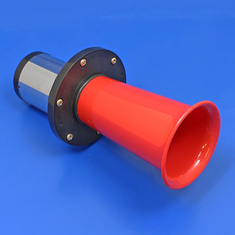 Klaxon type horn. Makes the wonderful traditional sound of OOOOO-HA. Red trumpet. Very loud at 110db. Universal 12V application