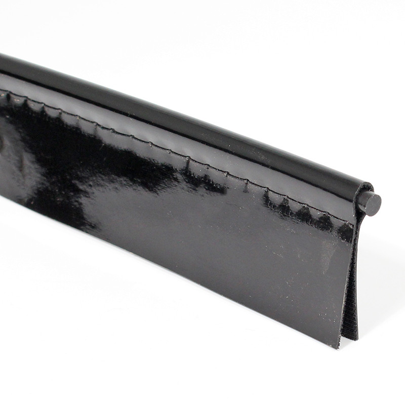 Leathercloth covered fender welt, stitched over plastic cord centre, bright (shiny) patent look finish, black only. Approx 4mm diameter, 32mm flange.