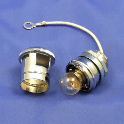 Chrome top dash lamp, panel fixing through 19mm hole. Basic switch incorporated into twist cap. Maximum diameter 30mm, height from panel approx 40mm. Uses a BA15S bulb, for spare bulbs please see our B205 (6v) of B207 (12v).
