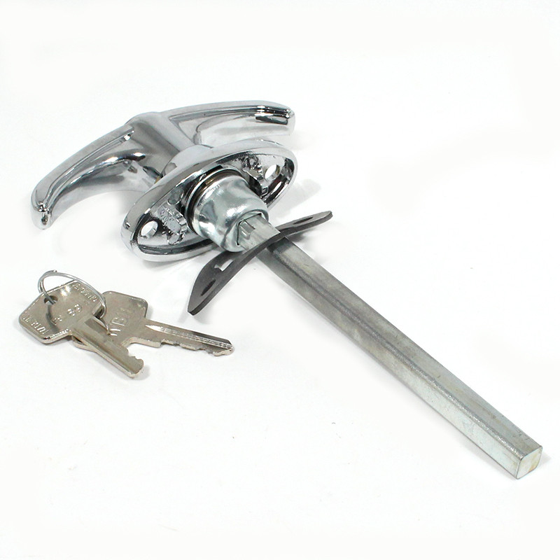 'T' boot handle approx 95mm long, escutcheon hole centres 44mm, chrome plated.