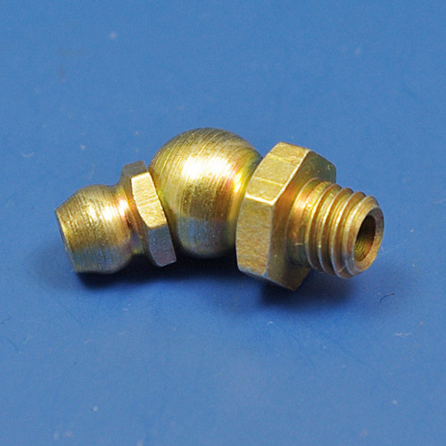 Hydraulic grease nipples, 45 degree nipple to thread angle, threads 1/8"BSP, 1/4"BSF, 5/16"BSF, 3/8"BSF, 1/4"UNF, 5/16"UNF. Use with 4 jaw grease gun connectors e.g. 108E and 108D. If you are unsure of your grease nipple thread consider part number ThreadTest