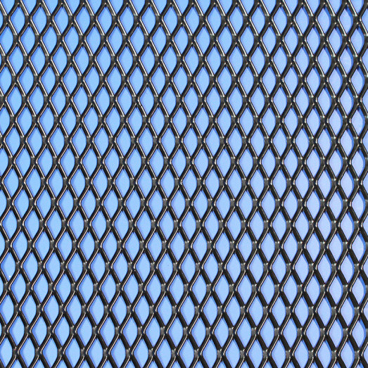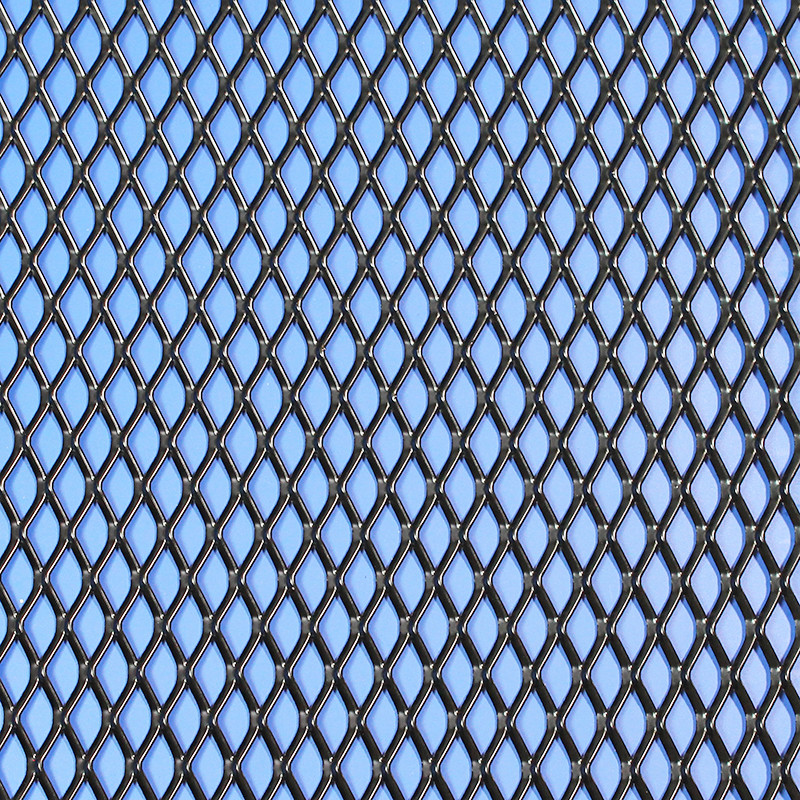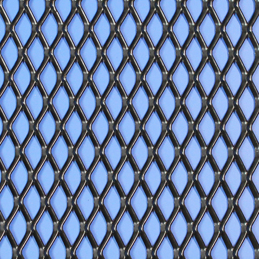 BLACK expanded aluminium mesh. Diamond pattern - 6mm x 12mm aperture (long measurement parallel with 600mm edge of sheet). 0.9mm thick sheet, strand width 1.8mm, sheet flattened after expansion to improve the finish. Good for radiator grilles and air vents. PVDF coated in Satin Black. Coating provides enhanced weather protection and a long service life. There are parcel dimension constraints for sending this item - please ask for a shipping quote.