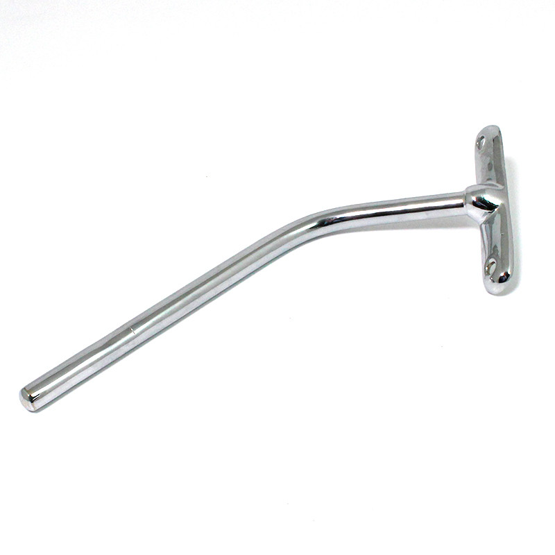 Non-adjustable cranked rod mirror arm, available in chrome or nickel plated finish - please make your selection from the option box. Arm base dimensions 96mm x 21mm with two approx. 6mm diameter mounting holes with 75mm between centres. 7/16" (11mm) diameter rod approx. 150mm long. Offered for LEFT or RIGHT side fitting. Please note that style may vary from illustration. Lost wax cast bronze base with solid brass rod.