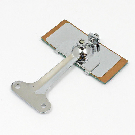 Reproduction interior rear view mirror equivalent to the pre-War Lucas 309L type. CONVEX mirror glass. Mirror head 4” by 1 ¾” (100mm x 43mm). Two screw hole base mount as shown, with 40mm hole centres. Chrome on brass finish. Overall height approx 117mm. A good quality small driving mirror which reflects a panoramic view. It can be mounted on the dashboard without obstructing the driver's vision. A smooth positive ball joint allows for easy adjustment. The mirror glass is held by a clip that allows easy removal for cleaning. Chrome on brass finish. Very similar in design to the Desmo No. 248 model, though the bottom fixing of that mirror is hinged.
