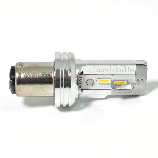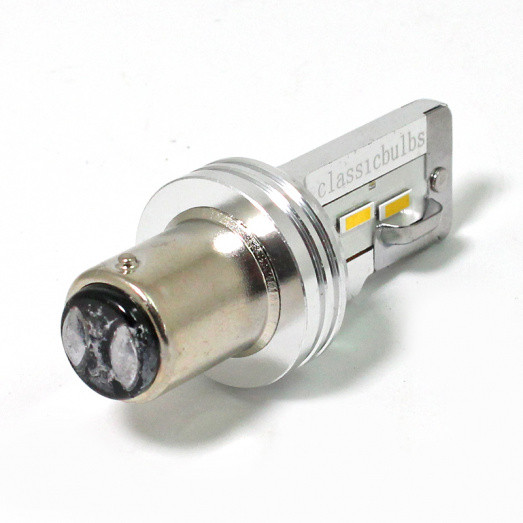 In testing, this LED lamp produced a great high and low beam pattern with Lucas 'U' flute style lenses in particular and is the recommended BA15D 'no integral lens' LED lamp upgrade for early headlamps fitted with these lenses, with or without a Bi-flex bar. For 'Difusa' style lenses, we recommend the BA15DLED-H30-6N or 6P style LED, which imitates a twin (unshielded) filament bulb, or BA15DLED-H43L with the integral lens that produces great light output - regardless of reflector condition - and an excellent, defined dipping pattern