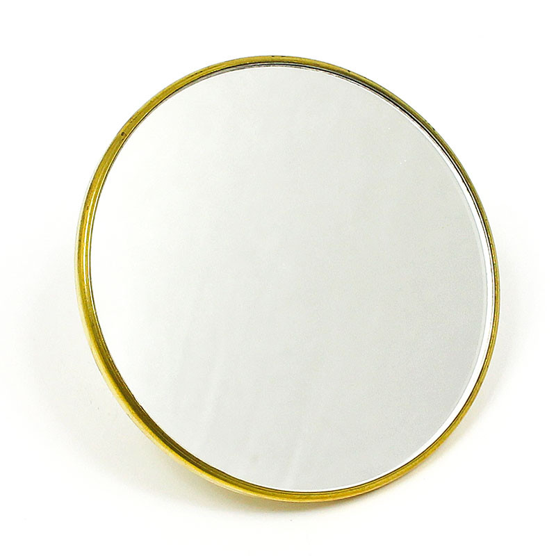Circular clip on mirror - diameter 90mm. Available in polished brass or stainless steel finish