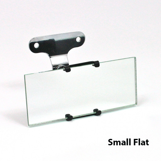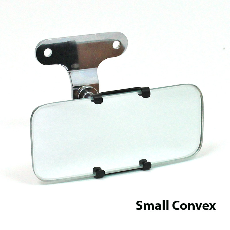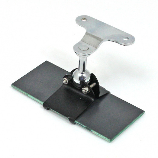 Reproduction interior rear view mirror equivalent to the Desmo No. 38 type from the late 40's, probably the most popular interior mirror of its kind at one time. Of neat appearance, it is available as a bracket only, or fitted with frameless glass - please see mirror glass size options below. The ball joint on the mounting bracket enables the mirror to be placed in any desired position. The same mounting bracket was also used on the Desmo No. 225 panoramic mirror. The ball diameter is 16mm, sized as original, to fit a range of mirror glass clamps should you wish to retain your mirror head.