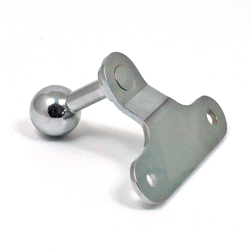 Chrome on brass mounting bracket with gloss black powder coated stainless steel mirror glass clamp bracket. Mounting bracket size 56mm wide by 42mm high with two 4.6mm mounting holes, 41mm between centres. Centre of ball 28mm below the mounting bracket holes. End of ball protrudes 40mm from the back of the mounting plate.