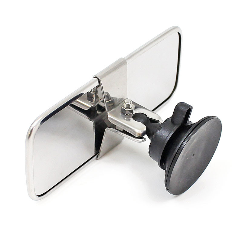 Suction mirror for interior use. Fitted to windscreen with suction cup. FLAT glass, stainless steel back and edge rim. Head size 156mm x 63mm.