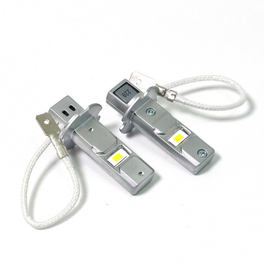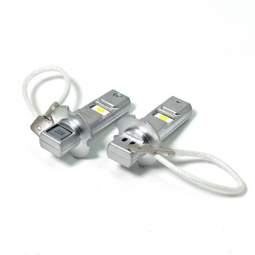 High quality LED upgrade with aluminium heatsink for H3 lamps with the PK22S base. A PAIR of V30 series lamp with CSP 3570 LEDs, 4500LM luminous flux. Replaces a standard H3 bulb in the same size envelope. Flexible application - 11 to 48V DC input, allowing 12V and 24V application. NEGATIVE EARTH ONLY! One high power LED array on each side of the lamp body. In testing, these lamps proved brighter than 12V B453 (55W) when installed in a lamp, with a classic white look. SOLD AS A PAIR