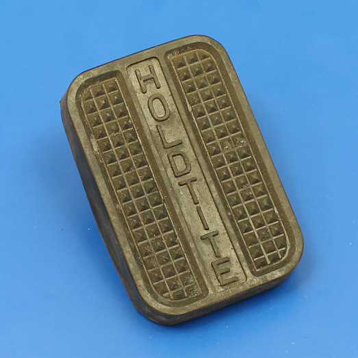 Clutch and Brake Pedal Rubber. Equivalent to original Holdtite pattern No.19. Oblong shape. Internal recess for pedal size 1 9/16" x 2 9/16". Overall size 1 15/16" x 2 7/8". Aperture 1 3/8" x 2 3/8" (with 1/4" notch at base). Original applications include - Ford, Hillman, Morris, Renault, Singer, Sunbeam, Volkswagen