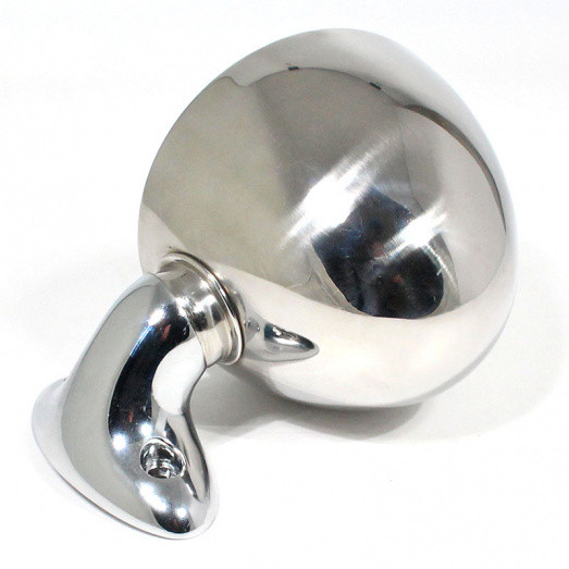 A classic bullet style exterior mirror appropriate for fitting to wing or door using two mounting holes with centres 50mm apart. FLAT mirror glass approximately 88mm in diameter.