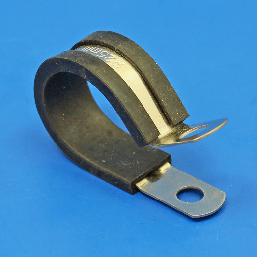 25mm (1 inch) Rubber-lined Zinc Plated Steel 'P' Clip. For securing tubes, hose, pipes and wiring.